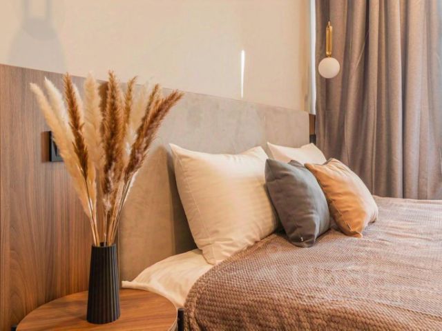 • В спальне вас ждет большая, невероятно комфортная кровать с ортопедическим матрасом, гарантирующая глубокий и восстанавливающий сон после насыщенного дня.
