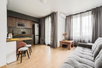 Однокомнатная квартира с просторной кухней и лоджией, идеально подходит для командировок, отдыха и проживания на 1-3 месяца. Бронируется от 2х суток. Цена зависит от длительности срока проживания.