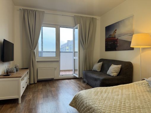 + Размещение до 6 ГОСТЕЙ (двуспальная кровать с удобным матрасом, двуспальный диван в комнате и на кухне)