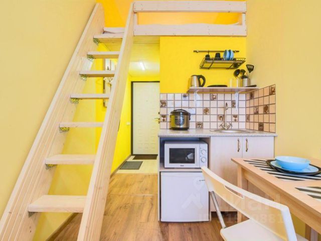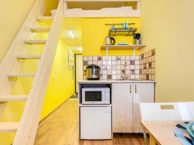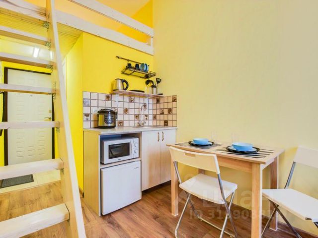 - Кухня оборудована плитой, чайником, микроволновой печью, холодильником, посудой, столовыми приборами, кастрюлей, сковородкой