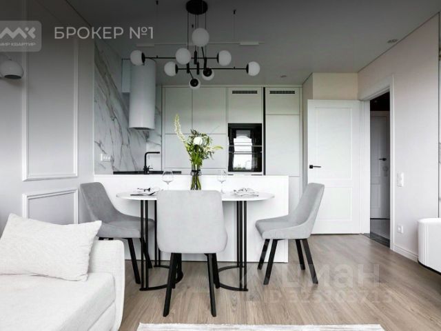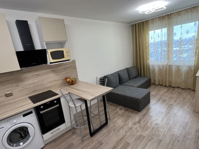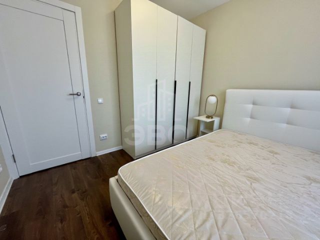 В квартире: современная кухня со встроенной техникой (варочная поверхность, духовка, посудомоечная машина), холодильник, микроволновка с грилем, большой телевизор 43" Smart TV, стол + 4 стула, диван, тумба, 2-спальная кровать с матрасом, большой встроенный шкаф-купе. В санузле - навесной шкаф с зеркалом, стиральная машина. В прихожей - удобная вешалка.