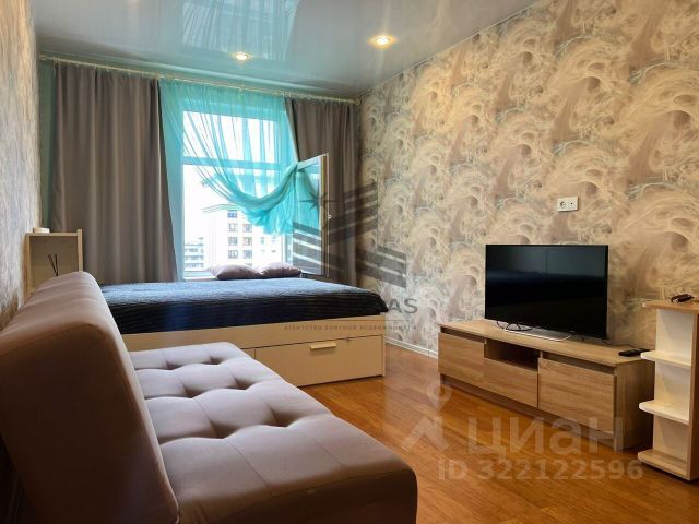В Спальне (17кв м2) новая большая 2х спальная кровать с абсолютно новым ортопедическим матрасом, с наматрасником, подушки и одеяло. 2е подвесные прикроватные тумбы, подвесной туалетный столик с зеркалом, пуфик и большой вместительный шкаф. Люстра с разными режимами управляется с пульта.