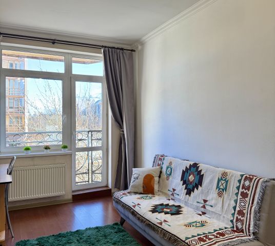 Сама квартира солнечная, тихая, теплая. В квартире современный холодильник, стиральная машина, микроволновка ,высокоскоростной интернет, теплые полы в душевой зоне и кухне, газовая плита.