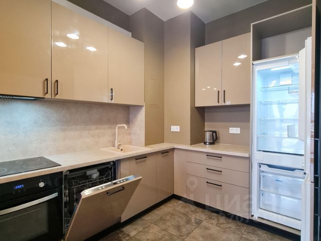 Кухня укомплектована всей необходимой техникой (холодильник, посудомоечная машина, микроволновая печь, вытяжка). Для удобства проживающих: посуда для приготовления пищи, столовые приборы, пароварка, чайник, пылесос, фен, а также гладильная доска.
