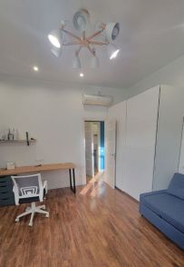 Квартира полностью оборудована для комфортного проживания, много мебели и свободного места для вещей: вместительная стенка с 2 платяными шкафами, большой шкаф-купе в коридоре, рабочий стол, есть антресоли для вещей, шкафчики в туалете и ванной.