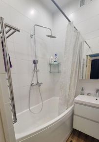 Квартира подойдет для проживания 1-2 взрослым. Возможно размещение также с ребенком (оговаривается дополнительно). Животные обсуждаются индивидуально.