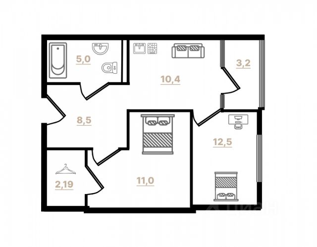 — Планировка просто мечта: квартира зонирована на полноценную спальню с гардеробом и отдельную детскую комнату — идеально для молодой семьи или пары с ребёнком.