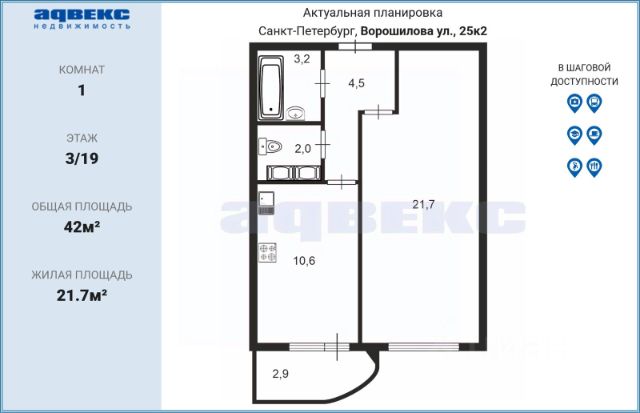 Сдается от собственника (без комиссии) чистая, теплая, уютная квартира с кондиционером и гардеробной. Квартира 46 м2 сдается на долгосрочный период. Вся необходимая мебель и техника есть: керамическая варочная панель Hansa, встроенный духовой шкаф Hansa, холодильник Samsung, телевизор Samsung, стиральная машина Samsung, кондиционер Fujitsu, двуспальная кровать, раскладной диван. Квартира расположена на 10 этаже, застекленный облагороженный балкон. В пешей доступности магазины (Пятерочка, Магнит), аптеки, спорт клуб, салоны красоты, кофейня, две школы, садик. Удобная транспортная доступность, в пешей доступности две станции метро (пр. Большевиков, Ладожская). Коммунальные платежи оплачиваются отдельно, летом около 3 000, зимой около 5 000. Залог 40 000 (можно разбить на две части). Пожелания по жильцам: без животных, чистоплотные, порядочные, платежеспособные люди. ----- Примечание: у собственника могут быть дополнительные пожелания к жильцам - обсудите их в чате или по телефону Сдается 1-комнатная квартира с детьми на улице Ворошилова в Санкт-Петербурге.