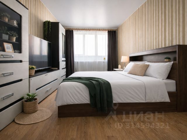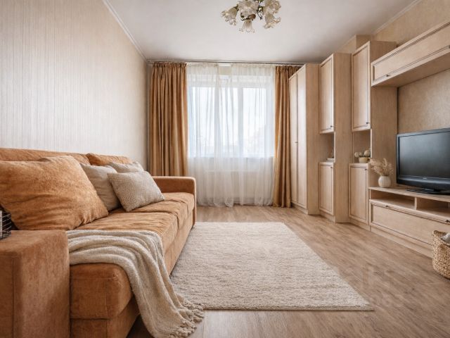 - В комнате: кровать, диван, шкаф, комод, стол, телевизор;