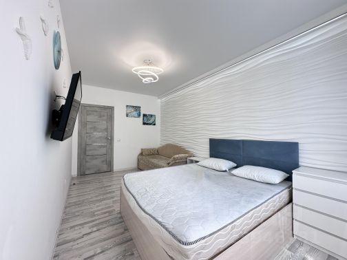 Планировка: Просторная евродвушка, совместная зона кухни и гостиной. Здесь предусмотрена удобная барная стойка, которая станет отличным местом для дружеских встреч и семейных ужинов.