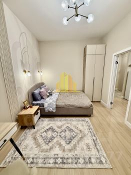 Из важных мелочей также есть фильтр для воды Аквафор с новыми картриджами, посуда, раскладная сушилка для белья, гладильная доска, постельные принадлежности, плотные шторы, красивые люстры. Квартира полностью готова для проживания.