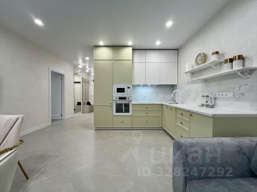 Кухня оборудована встроенной техникой: индукционная плита, духовой шкаф, посудомоечная машина, есть СВЧ печь, чайник, холодильник, все розетки в рабочей зоне кухни скрыты в столешницу - супер удобно.