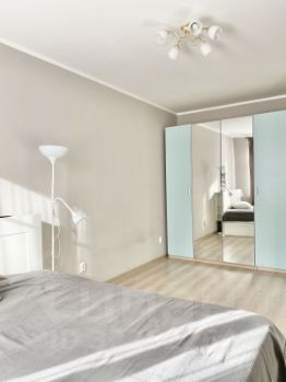 Спальная зона с двуспальной кроватью 160x200 + качественный матрас Аскона, раскладной дизайнерский диван 140x200 для двух взрослых. Телевизор 55' Xiaomi с цифровыми каналами (работают Ютуб и т.д.), рабочее большое место с настольной лампой, стул с поддержкой спины, бесплатный 300 мбит/с WI-FI + ethernet розетки;
