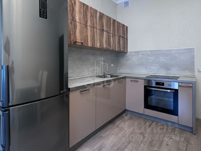 двуспальная кровать с ортопедическим матрасом, раскладной диван, шкаф-купе для хранения вещей, стиральная машина, однокамерный холодильник, духовой шкаф, СВЧ, индукционная плита, вытяжная вентиляция, эл.чайник.