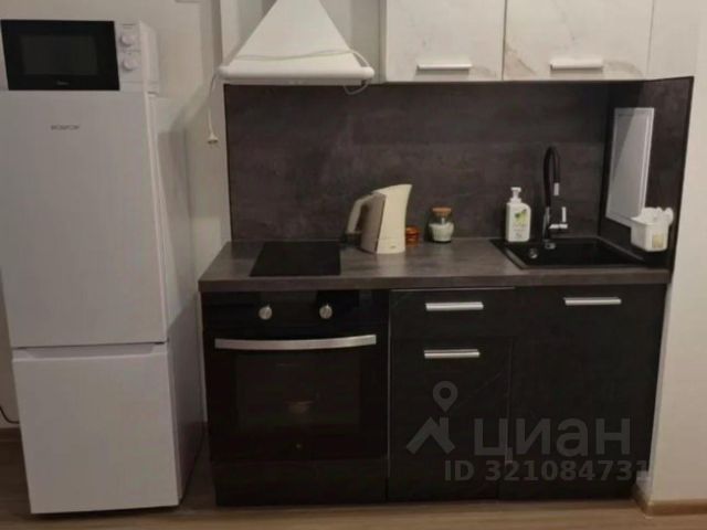 *Кухня-гостиная со всей необходимой техникой и мебелью вместительный кухонный гарнитур в потолок, закроет пространство от визуального шума.