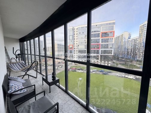 Уютная комната, правильной геометрической формы с выходом на огромную застекленную лоджию, с панорамным остеклением, откуда открываются бесподобные виды, где можно встречать рассветы и закаты с любимой чашечкой кофе, любуясь красотами Санкт-Петербурга.