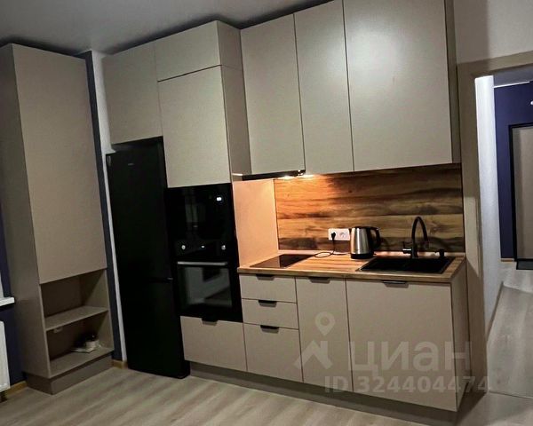 Просторная кухня-гостиная, где с комфортом можно разместиться, с выходом на большую остекленную лоджию с панорамными окнами в пол.