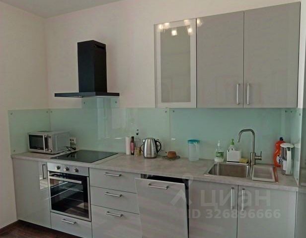 Общая площадь квартиры -33,3 кв.м., жилая площадь -15,2 кв. м., кухня - 9,5 кв.м., лоджия-5,0 кв.м. С/У-раздельный. В квартире есть все необходимое: варочная панель, духовой шкаф, холодильник и стиральная машина, диван, телевизор, кухонный гарнитур.