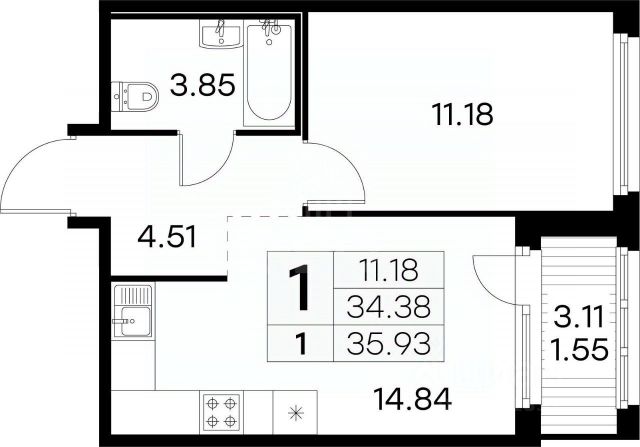 От года, 35 000 ₽ + 5 000 ₽ комм. платежи (без счётчиков), комиссия 43%, залог 37 000 ₽