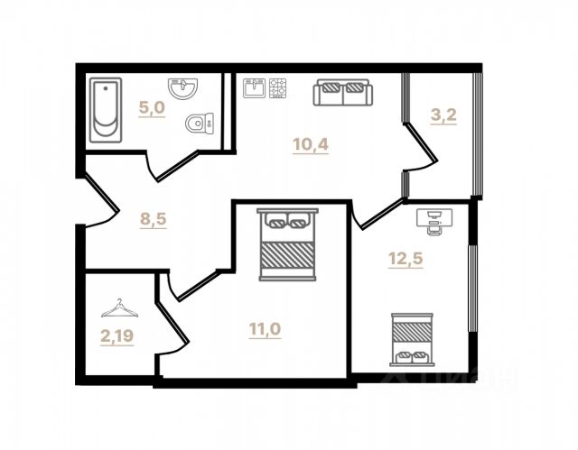 От года, комм. платежи не включены, без комиссии, залог 70 000 ₽