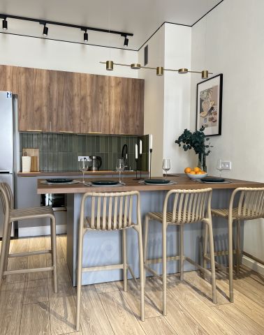 Просторная квартира с дизайнерским ремонтом, отдельной спальней и кухней в премиальном ЖК Новый Лесснер. Расположение всего в 5 минутах от реки Невы. В пешей доступности — сады и парки.