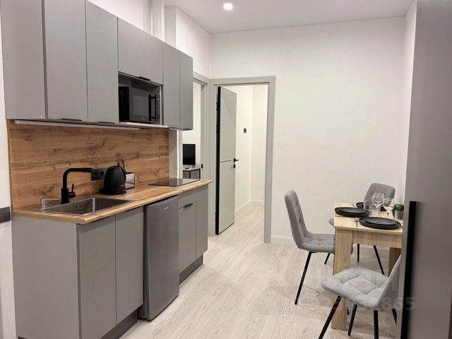 Кухня оборудована всем необходимым-холодильник, микроволновая печь, плита, чайник, а также посуда, приборы
