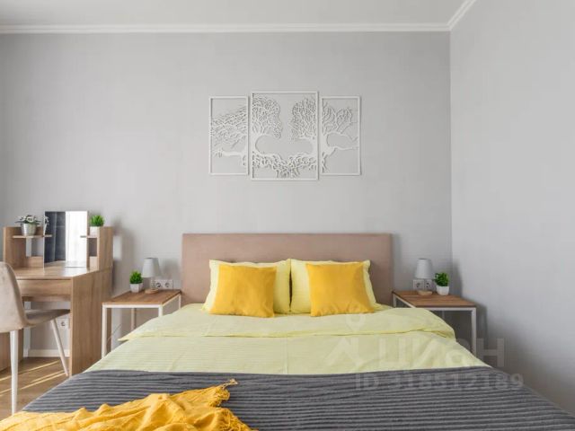 В спальне кровать (180см) с ортопедическим матрасом, рабочее место, шкаф