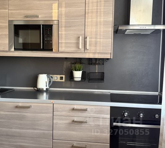Кухня (8 м²): Современный гарнитур, индукционная варочная панель, духовой шкаф, посудомоечная и стиральная машины, микроволновая печь, телевизор.