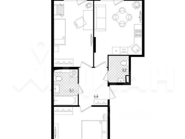 От года, 75 000 ₽ + 9 000 ₽ комм. платежи (без счётчиков), без комиссии, залог 80 000 ₽