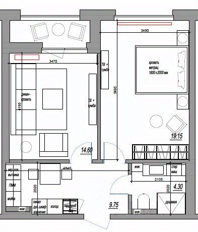 Метраж гостиной позволяет сделать зонирование, например на гостиную и рабочую зону.