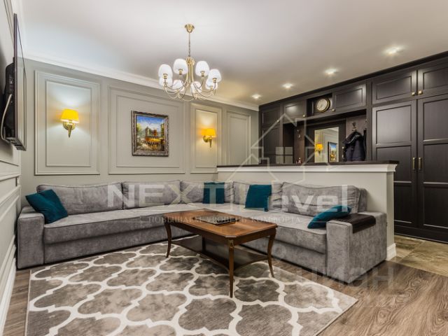 Квартира полностью оборудована для проживания всей необходимой мебелью и техникой , дизайнерский ремонт , классика в современных традициях.