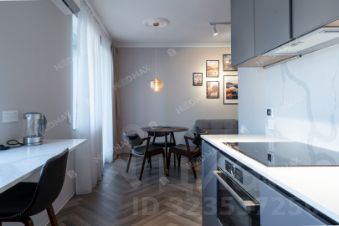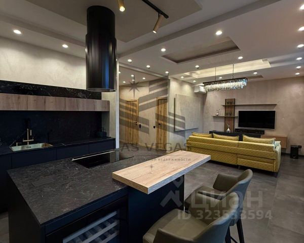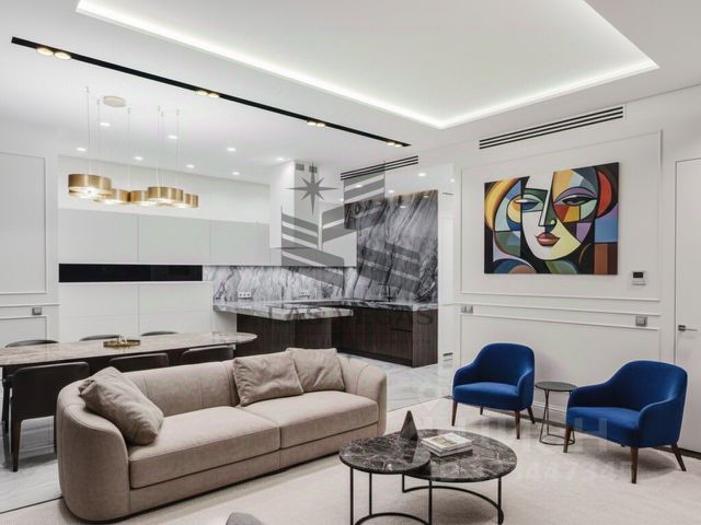 Кухня-гостиная: Сердце квартиры. Здесь размещается большая кухонный остров или полуостров, который служит и для готовки, и как барная стойка. Это место для встреч с друзьями и семейных вечеров.