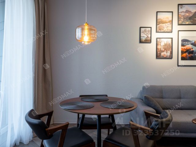 Качественные материалы: Напольное покрытие — инженерная доска или высококлассный ламинат; в санузлах и прихожей — керамогранит крупного формата. Стены идеально выровнены, установлены натяжные потолки со встроенной подсветкой.