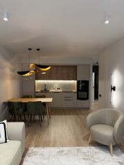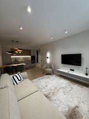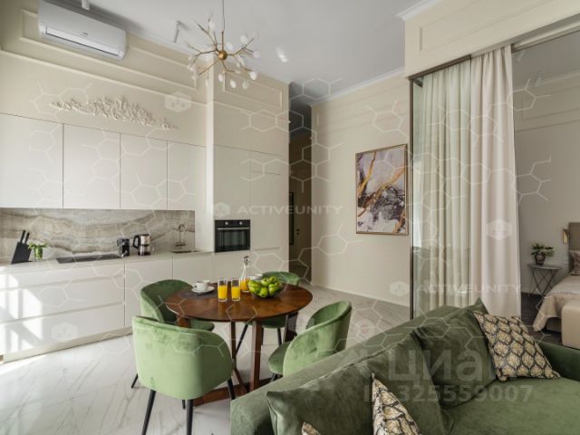 В квартире выполнен дизайнерский ремонт, установлены кондиционеры (сплит-система), полностью укомплектована мебелью и техникой: холодильник, индукционная плита, микроволновая печь, посудомоечная машина фирмы Smeg, духовой шкаф фирмы - Electrolux, осветительные приборы фирмы-Maitoni, диван-Garda Decor, кухонный гарнитур фирмы Мария, смесители и мойка фирмы Omoikiri, мебель фирмы Кардинал, интерьерные элементы и текстиль.