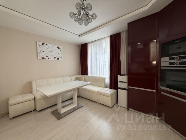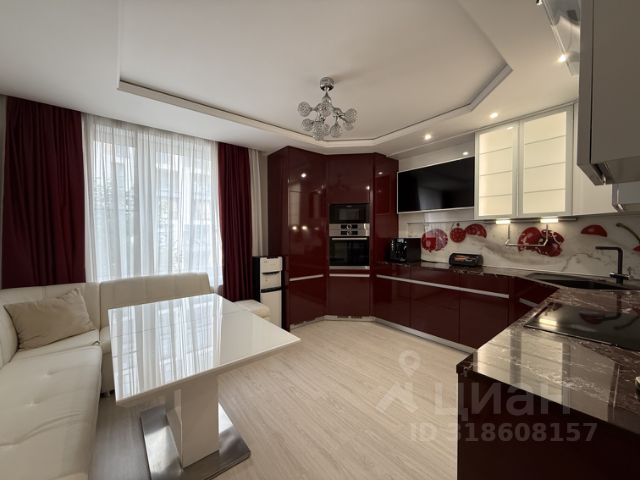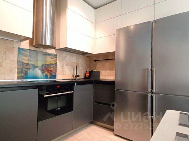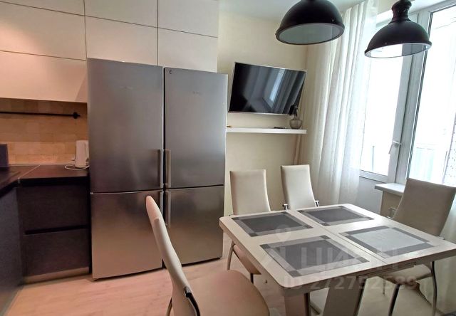 На кухне новая мебель с доводчиками, раздвижной стеклянный стол, большой новый холодильник No Frost, СВЧ, газовая панель на 2 конфорки с электроподжигом, электр. духовой шкаф, вытяжка, ЖК телевизор, шторы "блэкаут".