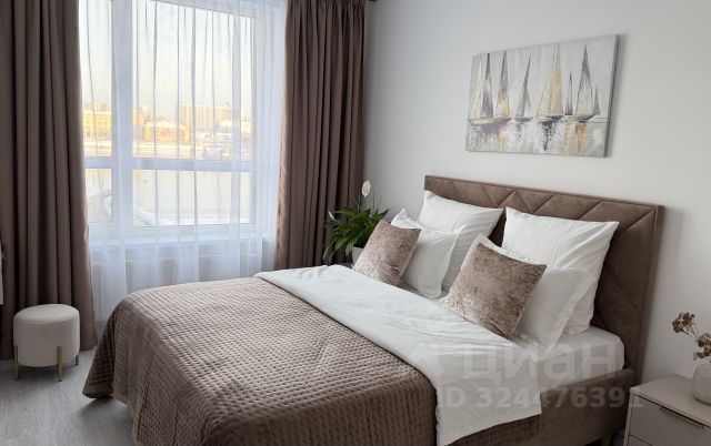 Кухня-гостиная полностью укомплектована и оборудована вместительным гарнитуром с антресолью, варочной поверхностью, духовкой, СВЧ-печью, вытяжкой, телевизором, посудомоечной машиной, полноразмерным холодильником, раскладывающимся диваном, обеденным и барным столом. В первой спальне, с выходом на застеклённую панорамную лоджию с видом на парк им. Бабушкина, вы найдёте удобную двуспальную кровать шириной 180 см. Вторая жилая комната (детская) с двухъярусной кроватью с ящиками для хранения и большим рабочим столом с подсветкой. В коридоре установлена прихожая. По всей квартире покрытие пола - ламинат, только в санузле - кафельная плитка со встроенным подогревом пола. В ванной установлена стиральная машина-автомат BOSCH.