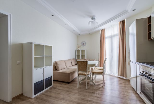 Сдается на длительный срок просторная 2-комнатная квартира в новом доме, в самом центре Санкт-Петербурга. В квартире выполнена отделка с использованием качественных материалов. В комнатах и на лоджии панорамное остекление, окна выходят на тихую пешеходную улицу и Феодоровский собор. Квартира полностью укомплектована всей необходимой мебелью и техникой для комфортного проживания: стиральная машина Bosch, посудомоечная машина, холодильник, варочная панель и духовой шкаф, робот-пылесос, 2 телевизора. Квартира сдается для 1 арендатора или пары, порядочных и ответственных, без детей и домашних питомцев. В квартире строго запрещено курить. Оплата 85 тыс + коммунальные услуги, залог 100%, комиссия 50%. Просмотры возможны в любой день по предварительной договоренности. Сдаю 2-комнатную квартиру с евроремонтом на проезде Полтавский в Санкт-Петербурге.