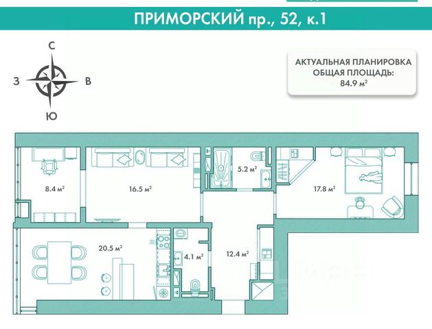 Арт. 92637181. МИДОМ.ЭКСПЕРТ.НЕДВИЖИМОСТЬ предлагает в аренду уютную двухкомнатную квартиру в доме с великолепной локацией и завораживающими видами в престижном Приморском районе.