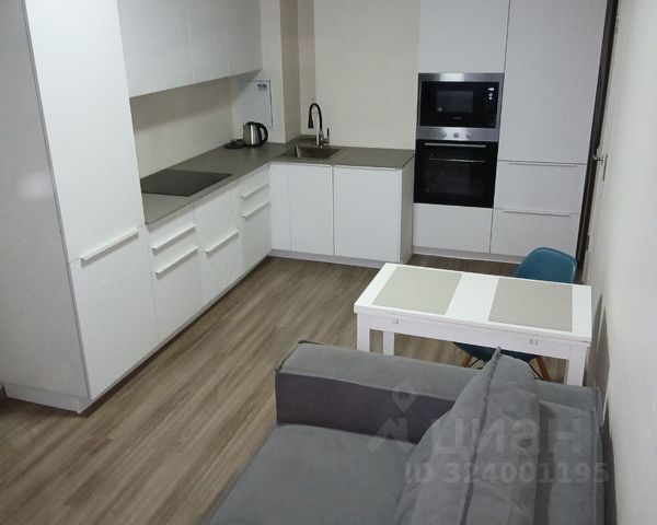 *Кухня-гостиная со всей необходимой техникой и мебелью вместительный кухонный гарнитур в потолок, закроет пространство от визуального шума.