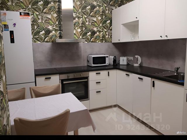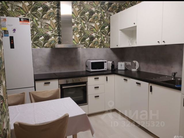 Кухня оснащена бытовой техникой: посудомоечная машина,холодильник, варочная панель, духовка, микроволновка, чайник. Есть необходимый набор посуды, столовые приборы, кастрюля, сковорода.