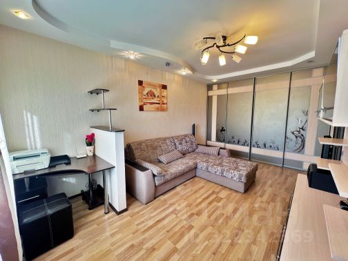 В большой комнате большой встроенный шкаф-купе во всю стену для тех, кому мало обычных шкафов, раскладной двухспальный диван, акустическая система 4.1 для объёмного звучания, телевизора нет