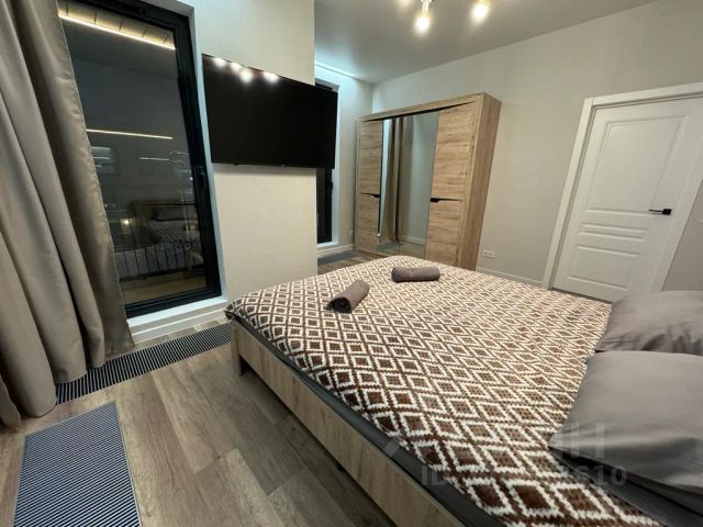 спальня для взрослых с большой кроватью, blackout-шторы. Есть выход на лоджию.