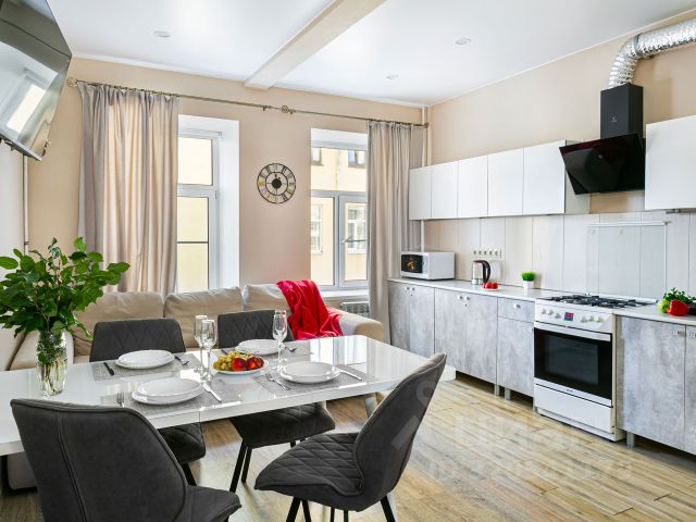 Уважаемые гости! Настроив даты заезда и выезда, вы увидите актуальную цену, в которую ВСЁ включено. Залога нет. Спальные места: 8 2 двуспальные кровати и 2 раскладных дивана Евро-трёхкомнатная квартира, из которой не хочется уходить, но всегда хочется вернуться снова. Дорогие гости, вам предоставляется возможность провести время в уникальной квартире в исторической части Петербурга, в самом сердце удивительного города - на Лиговском переулке, дом 6. Квартира с двумя спальнями и просторной кухней-гостиной оснащена всем необходимым для комфортного проживания 8-ми человек. Один совмещённый санузел с душевой + отдельный второй туалет. Расположена в Центральном районе Санкт-Петербурга, в 3 минутах от метро Площадь Восстания и Московского вокзала. Заезд: после 15.00 ч Выезд: до 12.00 ч Ранний заезд возможен, но не может быть гарантирован. Услуги хранения багажа нет. Если гость делает отмену бронирования за 2 недели до заселения, ему возвращается предоплата. Правила дома: Режим тишины с 22:00 до 09:00, студия не предназначена для проведения вечеринок и иных мероприятий. Заселение лиц не достигших 18 лет возможно только в присутствии родителей или попечителей. Заселение производится на основании предъявленного паспорта или любого документа с фотографией, удостоверяющего личность. Запрещено вступать в конфликт с соседями и открывать дверь неизвестным лицам. Выходя из студии необходимо закрыть краны и окна, выключить свет и электроприборы. В помещени запрещено находиться в уличной обуви. При выезде необходимо оставить чистыми посуду и бытовые приборы. Мусор при выезде оставляйте ТОЛЬКО в мусорном баке\пакете. Просим вас бережно относиться к помещению, мебели, бытовым приборам. Снять 2-комнатную квартиру на неделю на проспекте Лиговский в Санкт-Петербурге.