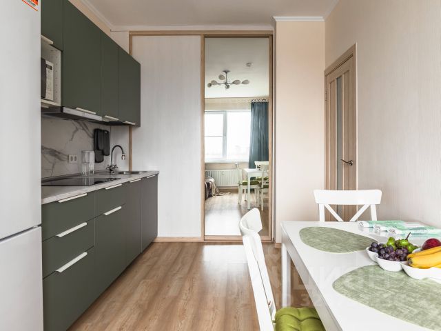 Спальня: двухспальная кровать 160х200 с новым жестким ортопедическим матрасом; шкаф-купе. Вторая комната: двухярусная кровать с ортопедическими матрасами 90х200, шкаф-купе, телевизор, рабочая зона (стол и кресла). Кухня-гостиная: обеденный стол, 2 комода, обеденный стол, дизайнерское зеркало в рост, холодильник, кухонные шкафы со всей необходимой посудой и приборами, микроволновая печь, варочная панель, электрический чайник, тостер, фильтр для воды, вытяжка. Прихожая: шкаф для одежды, обувница. Ванная комната: бесшумная стиральная машинка фен, большая ванна.