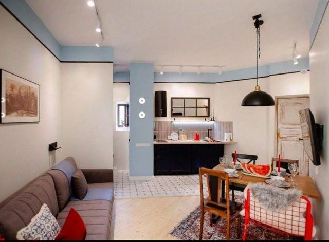 У "Пяти углов", самый центр, рядом метро Достоевская, Невский проспект и набережные Фонтанки. Бронируйте безопасно через sutki-piter. ЦЕНА зависит от СЕЗОНА, ДНЕЙ, ЧЕЛОВЕК. Уточняйте! Документы для КОМАНДИРОВОЧНЫХ. ИМЕННО ЭТА КВАРТИРА ПОДОЙДЕТ ВАМ, ПОТОМУ ЧТО: ** расположена в самом центре города, в знаменитом месте - "5 углов" ** рядом центральные станции метро, Невский проспект и Московский вокзал ** главные достопримечательности в шаговой доступности ** с интересным дизайнерским ремонтом и размещением до 4-х человек ** полностью благоустроена и оснащена ** в квартире тихо, окна выходят во двор А БОЛЕЕ ПОДРОБНО: Двухкомнатная квартира в самом центре города на Разъезжей улице в 5 минутах пешком от станции метро "Владимирская/Достоевская" и в 10 минутах пешком до Невского проспекта. До Московского вокзала также можно дойти пешком. Это место известно в Петербурге под названием "5 углов". Все основные достопримечательности на расстоянии приятной пешеходной прогулки по красивейшим местам города. Рядом музей-квартира Ф.М.Достоевского, музей Арктики и Антарктики, Владимирский Собор. В 15 минутах пешком - Океанариум. Около станции метро - крупный торговый центр "Владимирский Пассаж", супермаркет "Лэнд". Вход со двора. Двор небольшой, ухоженный. Хороший подъезд, домофон. Окна выходят во двор. Платная автостоянка в 5 минутах пешком от дома у Владимирского Пассажа. Общий метраж 47 кв.м. Новый ремонт ( 2020 г.). Интересные дизайнерские решения интерьера, студийная планировка. В Вашем распоряжении - гостиная 18 кв.м, совмещенная с зоной кухни и уютная спальня 18 кв.м. Квартира полностью благоустроена и оснащена всем необходимым для комфортного проживания, в наличии - ЖК-панель, холодильник, индукционная варочная поверхность, чайник, стиральная машина, пылесос, фен, утюг с гладильной доской, кухонные, постельные, туалетные принадлежности. По запросу предоставляется цифровое пианино Casio. Санузел совмещенный, с душем. Установлен бойлер. Подключены безлимитный ИНТЕРНЕТ, Wi-Fi, кабельное телевидение. Размещение до 4-5 человек ( два односпальных дивана в гостиной, двуспальная кровать в спальне и при необходимости возможно дополнительное место - односпальная раскладная евро-кровать). Снять 2-комнатную квартиру на неделю на улице Разъезжая в Санкт-Петербурге.