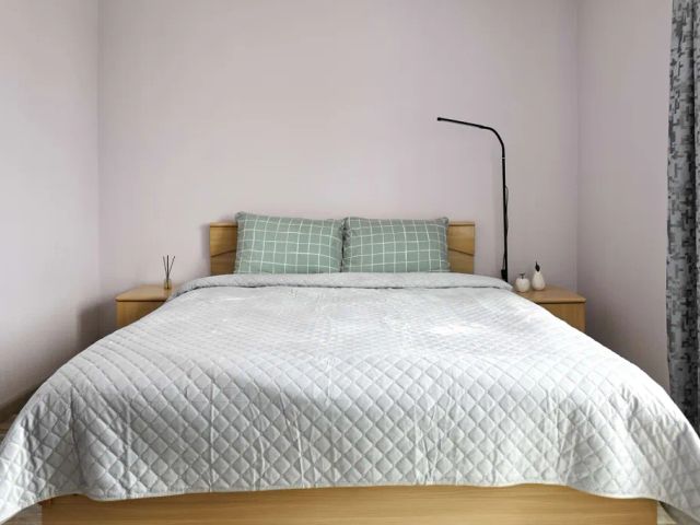 - двухспальная кровать 160 на 200 см с ортопедическим матрасом в спальне, туалетный столик с зеркалом, открытый гардероб, шторы блэкаут