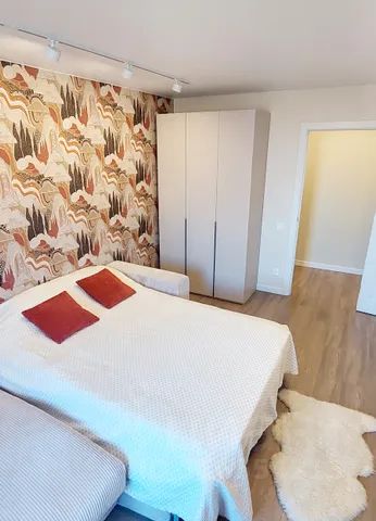 fresh renovation, electronic lock. Furniture: 180x200 cm bed (separable), desk, 2 chairs, kitchen unit, safe. Appliances: TV, Wi-Fi. Kitchen: cooktop, hood, fridge, microwave, dishes. Bathroom: shower, hairdryer. Linens provided. Pets — negotiable.