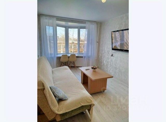 - в гостиной раскладывающийся диван (спальное место 200 на 140 см), уютное кресло для чтения и отдыха, телевизор с подпиской на сервисы ИВИ и KION, стеллаж с книгами о Петергофе, детскими книгами, настолками, шторы блэкаут