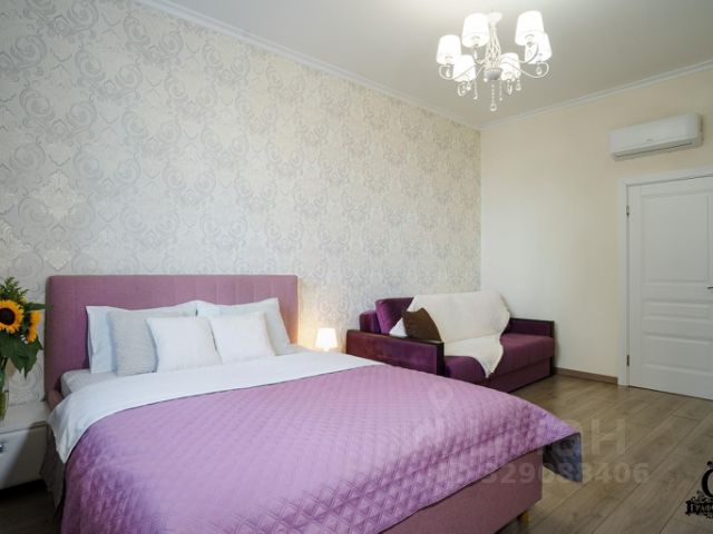 Для комфортного сна: большая кровать 180х200 см с ортопедическим матрасом аскона. Раскладной диван 160х200 см для 2-х гостей.