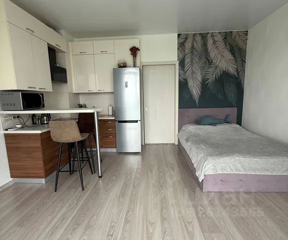 Уютная и продуманная студия 25 м² на 4 этаже 5-этажного дома в современном ЖК Пушгород. Всё необходимое для комфортного проживания пары или путешественника с ребёнком собрано в одном современном пространстве.